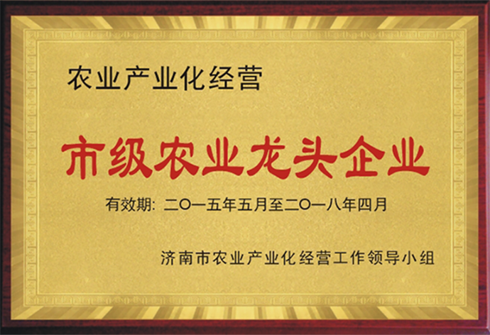 2015年,市农业局组织各县(市)区农业产业化主管部门及有关专家对认定期满的市级农业龙头企业召开了期满监测评价,在此次监测评价工作中,我公司顺利顺利获得验收,各动态指标监测合格,认定有效期限为2015年5月至2018年4月。